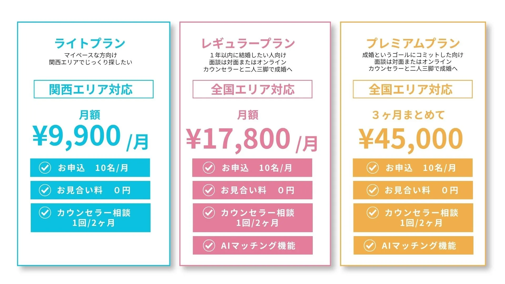 多くの相談所は年間契約のところも多いですが、当サロンは月額制です。